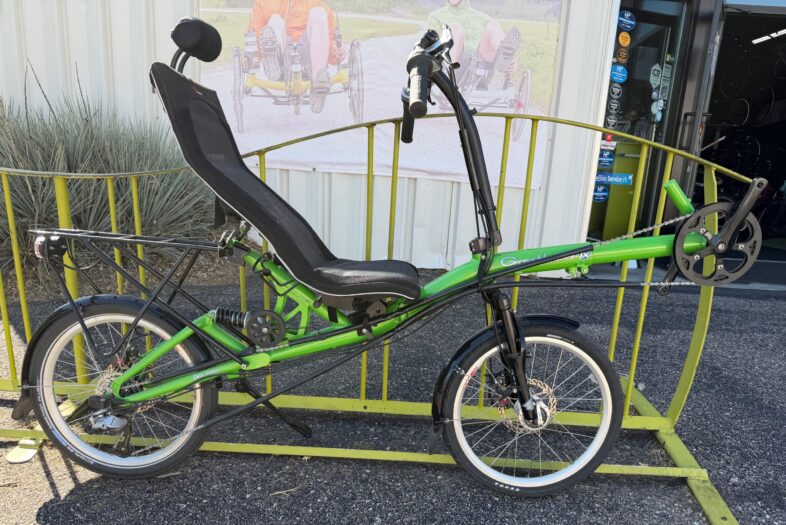 Aluminum, Full Suspension, Folding recumbent bike.